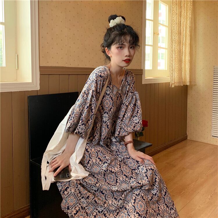 ワンピース レディース 春秋 キレイめ 七分袖ワンピース ロング丈 Aラインワンピース ゆったり エスニック風 上品 オシャレ 着痩せ RB-R3-12-CN05-0029