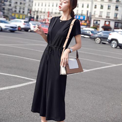 韓国風 セットアップ サロペット 2点セット 半袖Tシャツ カジュアル 体型カバー ホワイト ブラック 夏 20代 30代 40代 くすみカラー RB-R3-19-SA05-0014