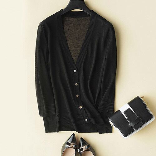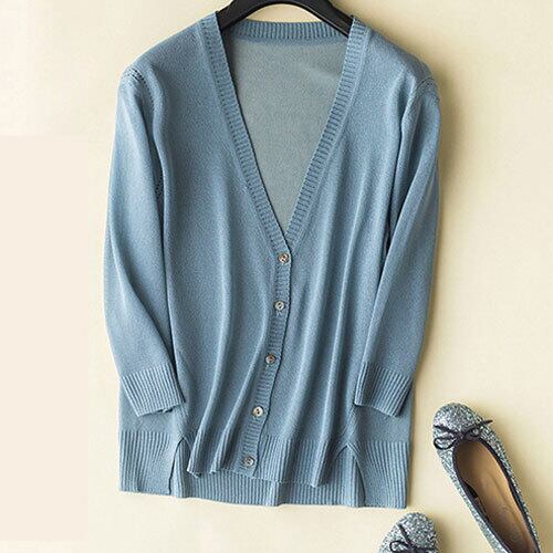 韓国風 カーディガン サマーニット 七分袖 Vネック 紫外線対策 薄手 体型カバー 4色 夏 20代 30代 40代 くすみカラー RB-R3-19-SA05-0015