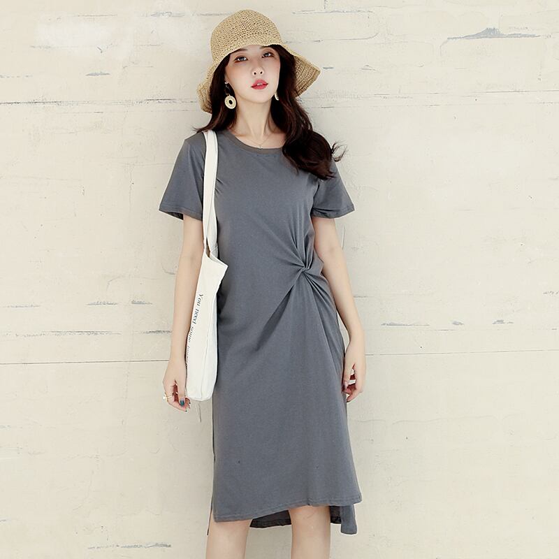 韓国風 ワンピース 半袖 シャツワンピース ロング丈 レディース ロングワンピース Tシャツ ロング 柔らか ねじりロング RB-R3-12-CN05-0041