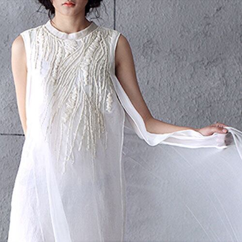ワンピース ロング 立襟 ノースリーブ 着痩せ 刺繍 ゆったり ホワイト 夏 20代 30代 40代 くすみカラー RB-R3-19-SA05-0018