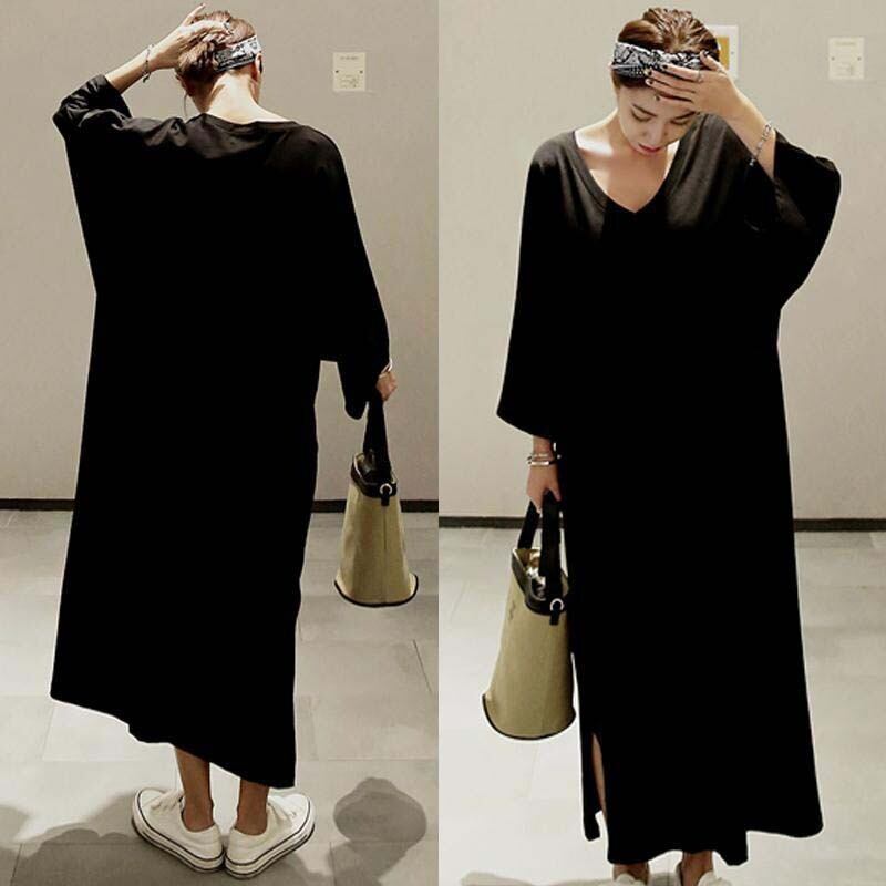 黒マキシワンピースレディース夏ワンピゆったりロングTシャツワンピース大きいサイズ超ロングワンピース半袖体型カバーゆるっとワンピースカジュアルRB-R3-01-NK05-0055