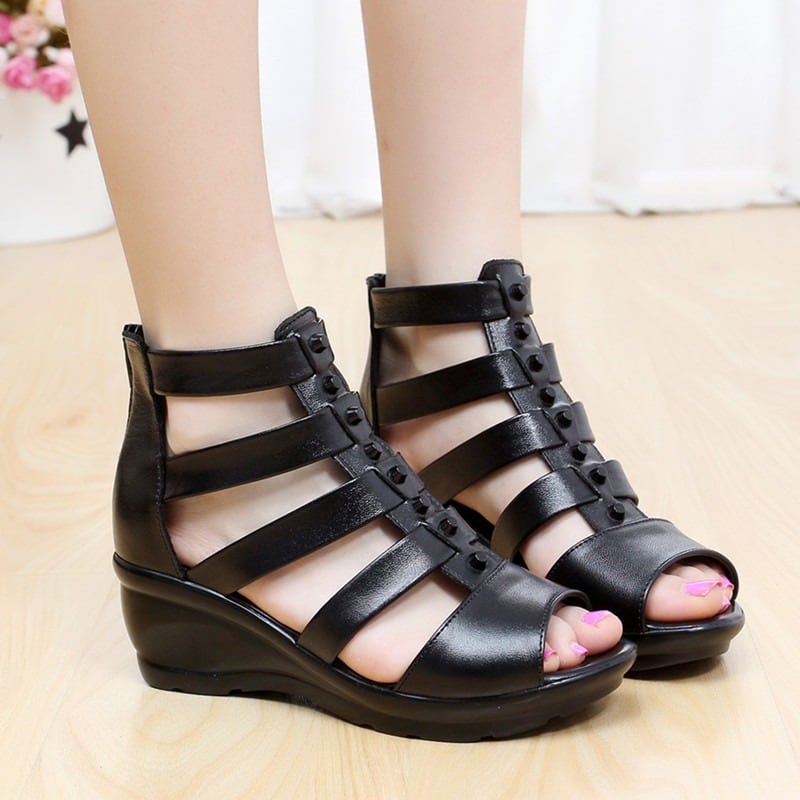 厚底サンダルサマーブーツサンダルレディースレザー本革ハイヒールロングブーツメッシュミュールシューズ夏美脚RB-R3-01-NK05-0056