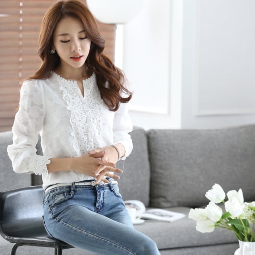 ブラウス ホワイト レース 長袖 オシャレ 着痩せ カジュアル 夏 20代 30代 40代 くすみカラー RB-R3-19-SA05-0034
