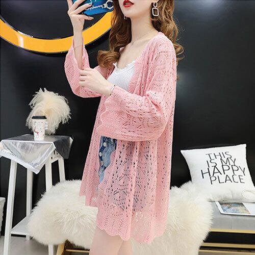 韓国風 カーディガン 薄手 ロング丈 透かし彫り 紫外線カット 冷房対策 オフホワイト ミントグリーン フレッシュイエロー ピンク 夏 20代 30代 40代 くすみカラー RB-R3-19-SA05-0051
