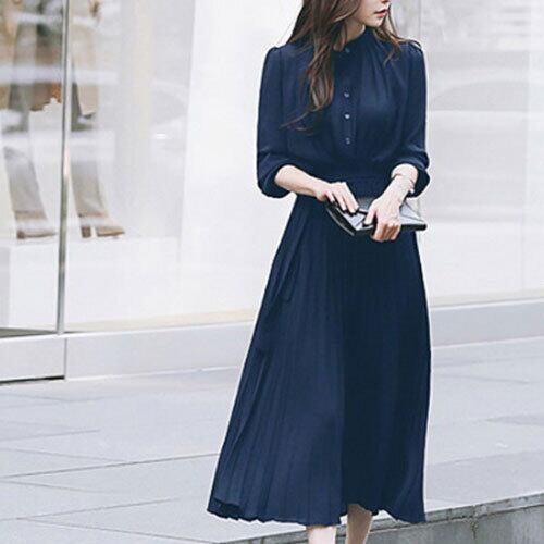 ワンピース マキシ丈 半袖 立襟 大きいサイズ プリーツ 4色 夏 20代 30代 40代 くすみカラー RB-R3-19-SA05-0063