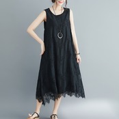 ワンピース レース ミドル丈 ラウンドネック ノースリーブ 着痩せ ホワイト ブラック 夏 20代 30代 40代 くすみカラー RB-R3-19-SA05-0081