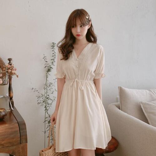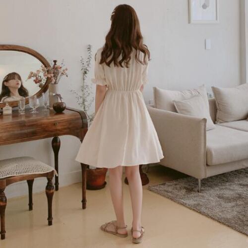 ワンピース ミニ丈 半袖 花びらスリーブ 半袖 着痩せ Vネック ブラック ホワイト 夏 20代 30代 40代 くすみカラー RB-R3-19-SA05-0084