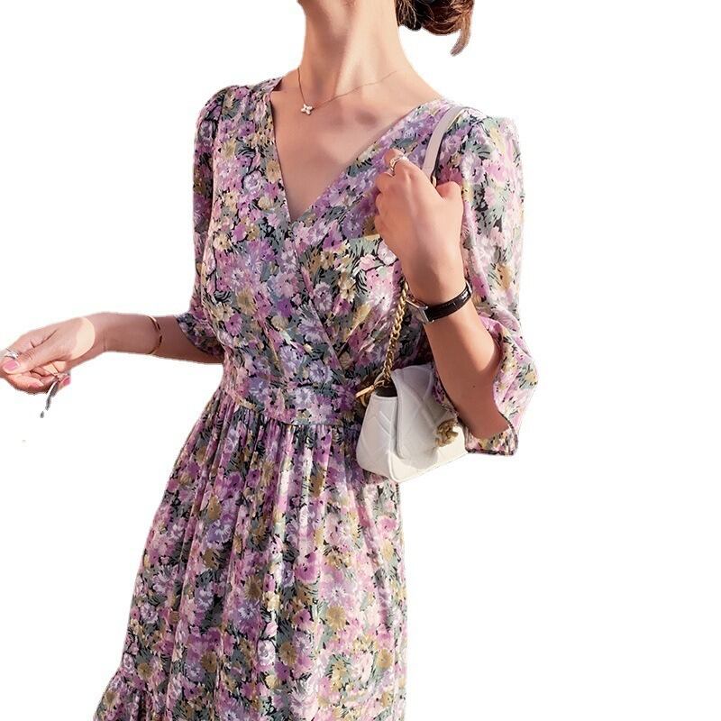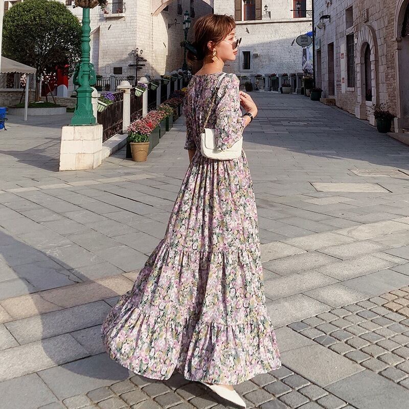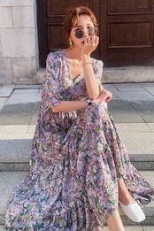 オシャレ マキシワンピース レディース 40代ワンピース 夏 ロングワンピース シフォンワンピース 花柄 Vネック オシャレ 結婚式ドレス お出かけ 大人 30代 50代RB-R3-20-NK06-0013
