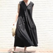 オシャレ 40代 マキシワンピース レディース 40代 ロング ワンピース 黒 きれいめ 無地 vネック 夏 大きいサイズワンピ 20代 30代 50代 通勤 体型カバーRB-R3-20-NK06-0018