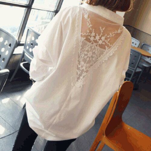 韓国風 ブラウス ホワイト ブラック レース 清涼感 長袖 薄手 さらっとした生地感 ストレートバレル 清潔感 ミディ丈 オフィス 通勤 ポロカラー 涼しげな ヤングレディー カジュアル 爽やかな すっきりデザイン シンプル 夏 20代 30代 40代 くすみカラー RB-R3-19-SA05-0079