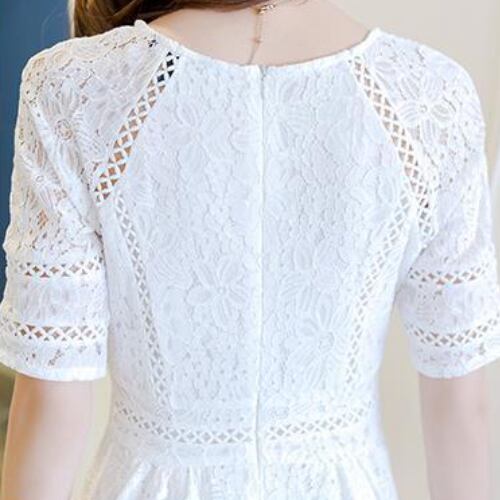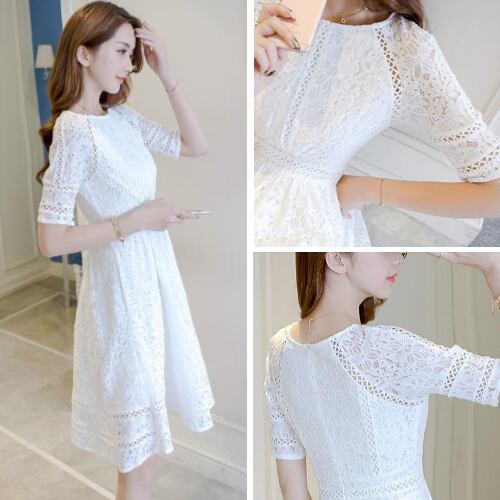 ワンピース 膝丈 半袖 レース 着痩せ ハイウエスト 2色 夏 20代 30代 40代 くすみカラー RB-R3-19-SA05-0096