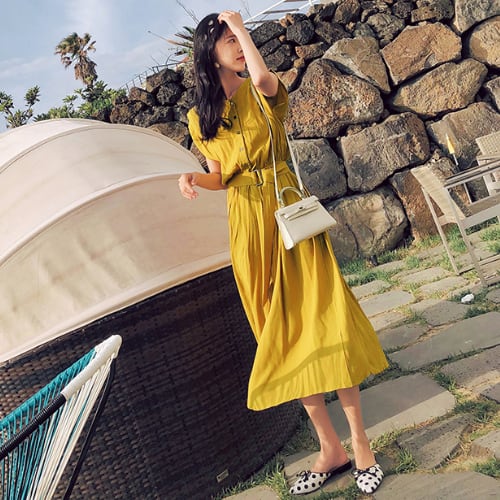 ワンピース シャツ Vネック マキシ丈 半袖 シフォン 着痩せ 涼し気 カジュアル 4色 夏 20代 30代 40代 くすみカラー 大きいサイズ RB-R3-21-SA06-0002