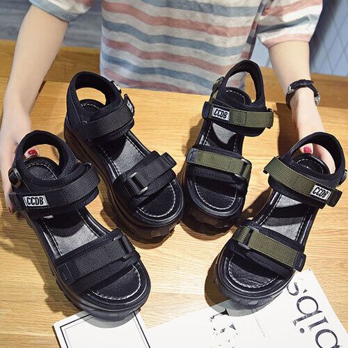 サンダル マジックステッカー 厚底 ウェッジソール 美脚 ブラック アーミーグリーン 夏 20代 30代 40代 くすみカラー 大きいサイズ RB-R3-21-SA06-0009