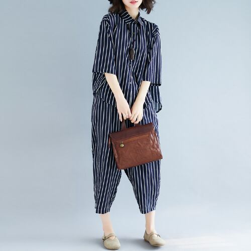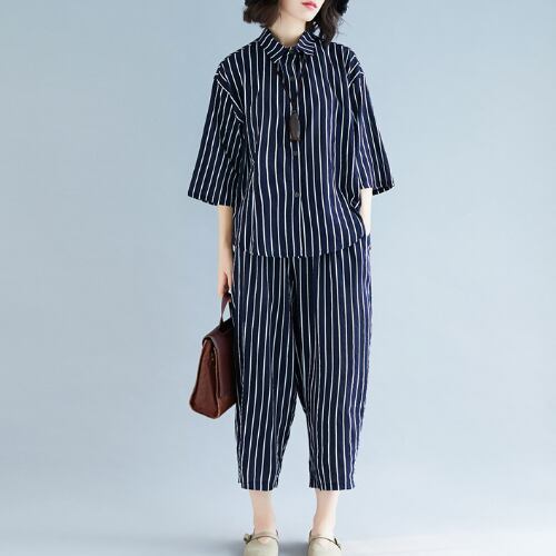セットアップ 2点セット 体型カバー おしゃれ 可愛い シンプル PORO襟 ポケット ストライプ 夏 20代 30代 40代 くすみカラー 大きいサイズ RB-R3-21-SA06-0018