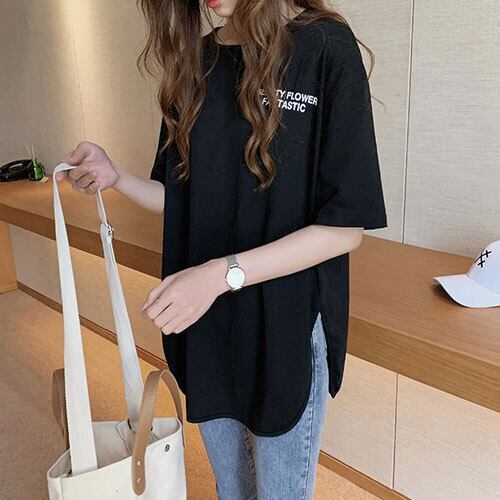 Tシャツ レディース 半袖 トップス ミドル丈 ラウンドネック プリント ゆったり プルオーバー カジュアル 着痩せ 上着 可愛い 体型カバー ルームウェア 夏 20代 30代 40代 くすみカラー 大きいサイズ RB-R3-21-SA06-0025