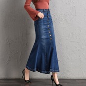 デニムスカート タイト マーメイドライン 着痩せ マキシ丈 ネイビーブルー 夏 20代 30代 40代 くすみカラー 大きいサイズ RB-R3-21-SA06-0027