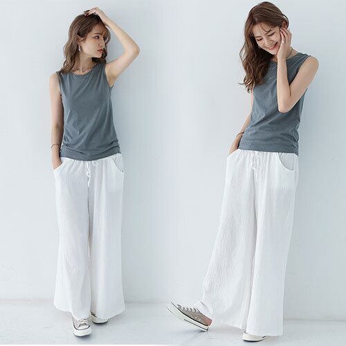 ワイドパンツ レディース ガウチョ ゆったり サルエル ウエストゴム リラックス 楽ちん 着痩せ 全6色 夏 20代 30代 40代 くすみカラー 大きいサイズ RB-R3-21-SA06-0033