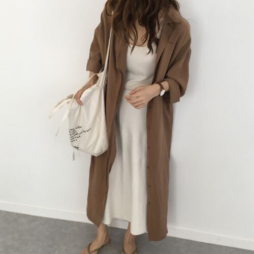 シャツワンピース レディース ロング 長袖 ミモレ丈 ゆったり 体型カバー ブラウン ネイビー 夏 20代 30代 40代 くすみカラー 大きいサイズ RB-R3-21-SA06-0036