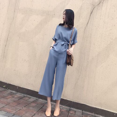 セットアップ レディース シフォン 半袖 リボン ブラウス 七分丈ワイドパンツ ガウチョパンツ シワになりにくい 体型カバー 通勤 夏 20代 30代 40代 くすみカラー 大きいサイズ RB-R3-21-SA06-0043