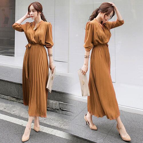 ワンピース レディース ミディアム丈 プリーツ 長袖 ウエストリボン おしゃれ 可愛い 通勤 夏 20代 30代 40代 くすみカラー 大きいサイズRB-R3-21-SA06-0044