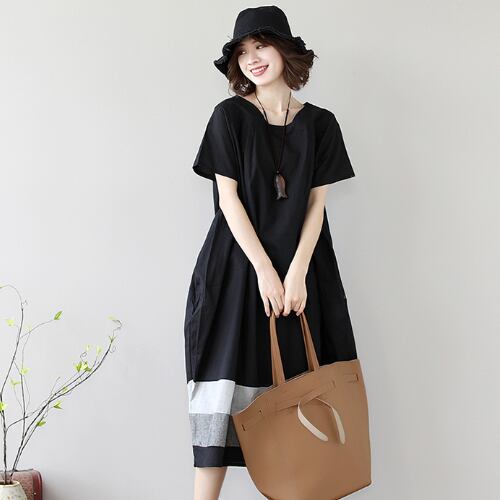 韓国風 ワンピース 半袖 ミドル丈 スクエアカラー きれいめ シンプル ブラック 夏 20代 30代 40代 くすみカラー 大きいサイズ RB-R3-21-SA06-0049
