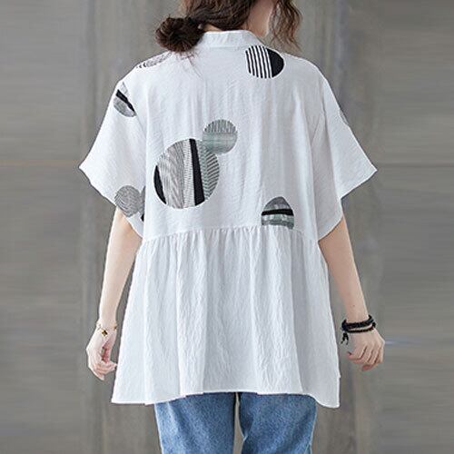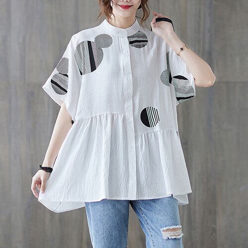 シャツ ぺプラムシャツ ドット柄 スタンドカラー 半袖 ゆったり ホワイト ブラック 夏 20代 30代 40代 くすみカラー 大きいサイズ RB-R3-22-SA06-0004
