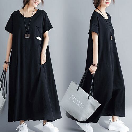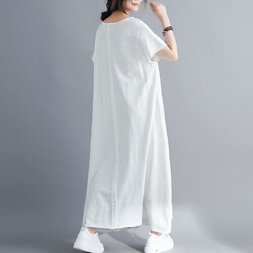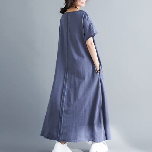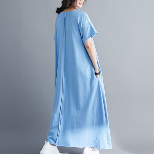 ワンピース マキシ丈 Tシャツワンピ 半袖 ラウンドネック 無地 ゆったり 全5色 夏 20代 30代 40代 くすみカラー 大きいサイズ RB-R3-22-SA06-0007
