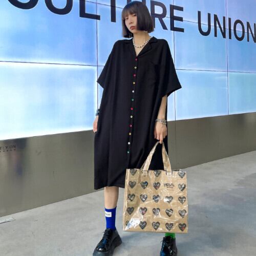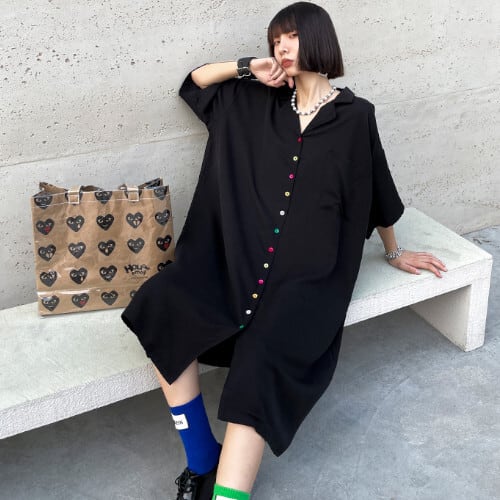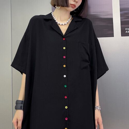 ワンピース 開襟 半袖 ミドル丈 シャツワンピ ボタン ブラック 夏 20代 30代 40代 くすみカラー 大きいサイズ RB-R3-22-SA06-0012