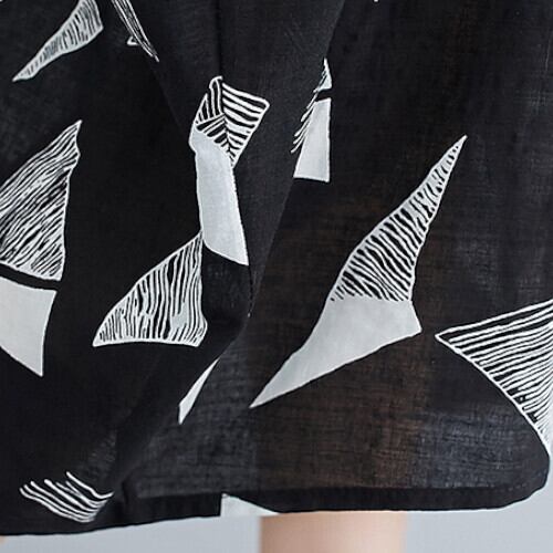 ワンピース コクーンシルエット 5分袖 ミドル丈 ラウンドカラー バットスリーブ 幾何学模様 ホワイト ブラック 夏 20代 30代 40代 くすみカラー 大きいサイズ RB-R3-22-SA06-0030