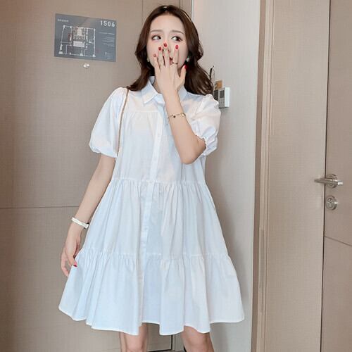 ワンピース ミニワンピ シャツワンピ チュニック スタンドカラー バブルスリーブ袖 半袖 ホワイト 夏 20代 30代 40代 くすみカラー 大きいサイズ RB-R3-22-SA06-0036