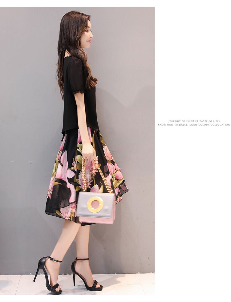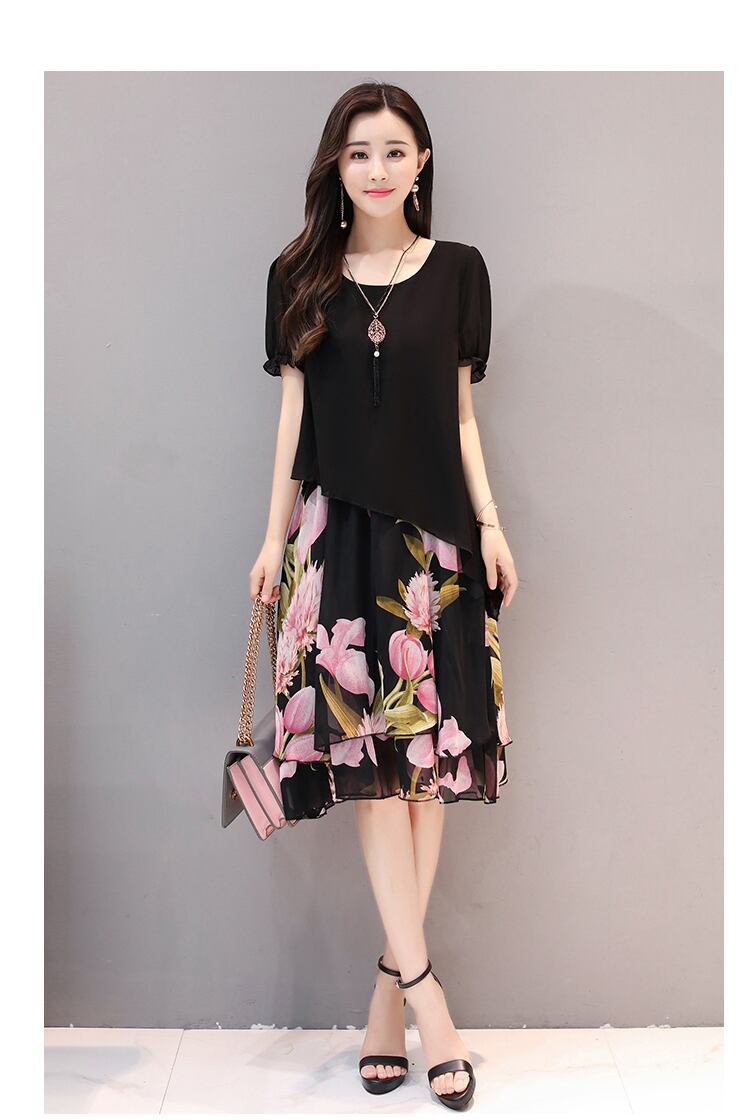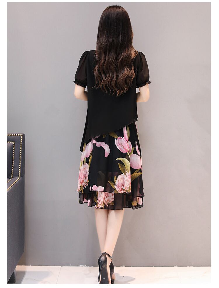 韓国風 20代 30代 40代 ワンピース ワンピース 体型カバー レディース シフォンワンピース 膝丈 ドッキング 花柄 半袖 フォーマルワンピース 着痩せ 夏ワンピース RB-R3-14-IS05-0103