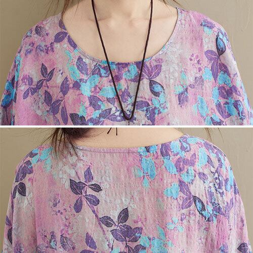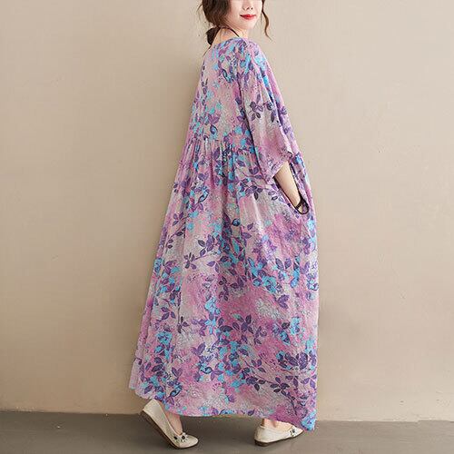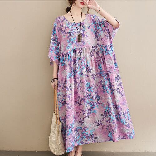 ワイドワンピース マキシ丈 ラウンドカラー バットスリーブ 5分袖 パープル 夏 20代 30代 40代 くすみカラー 大きいサイズ RB-R3-22-SA06-0043