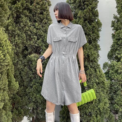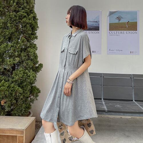 ワンピース レディース ポロワンピ PORO襟 半袖 ドルマン 無地 ミディ丈 夏 20代 30代 40代 くすみカラー 大きいサイズ RB-R3-22-SA06-0048