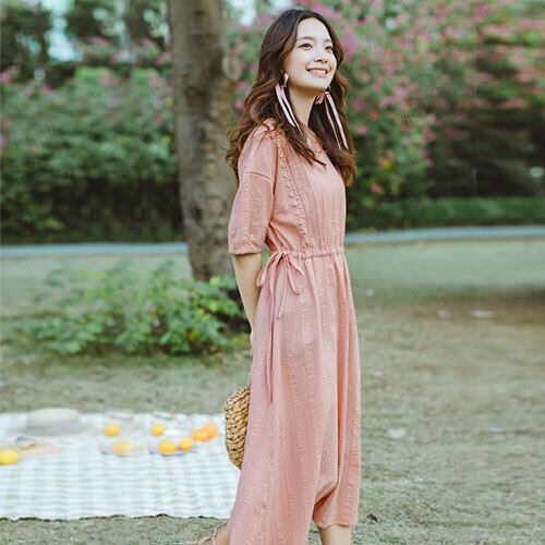ワンピース レディース マキシ丈 五分袖 ラウンドネック Aライン オシャレ レース 上品 お出かけ 夏 20代 30代 40代 くすみカラー 大きいサイズ RB-R3-23-SA06-0003
