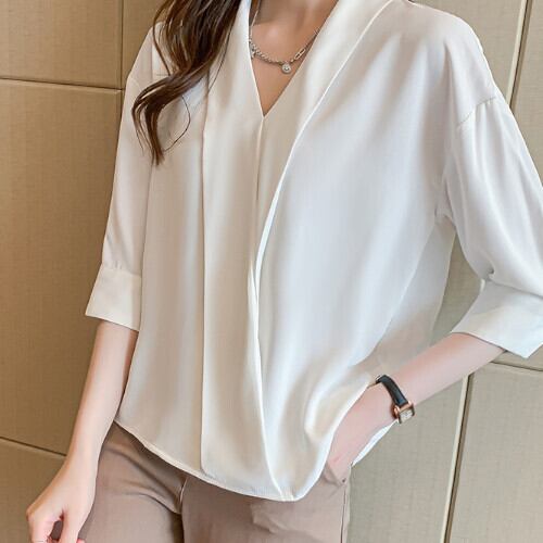 ブラウス レディース Vネック シフォン シャツ 七分袖 トップス フェミニン 通勤 ゆったり おしゃれ 夏 20代 30代 40代 くすみカラー 大きいサイズ RB-R3-23-SA06-0032