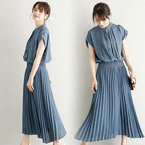 ワンピース レディース 半袖 ワンピ vネック ミドル丈 フレアスカート きれいめ プリーツ 大人 上品 結婚式 ゆったり 夏 20代 30代 40代 くすみカラー 大きいサイズ RB-R3-23-SA06-0035
