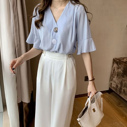 韓国風 ブラウス シャツ レディース トップス きれいめ 半袖 シフォン オシャレ 前開き ゆったり フォーマル 大人 夏 20代 30代 40代 くすみカラー 大きいサイズ RB-R3-23-SA06-0042