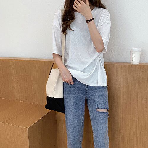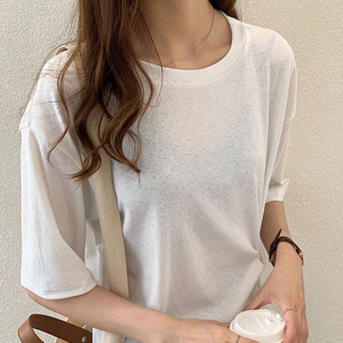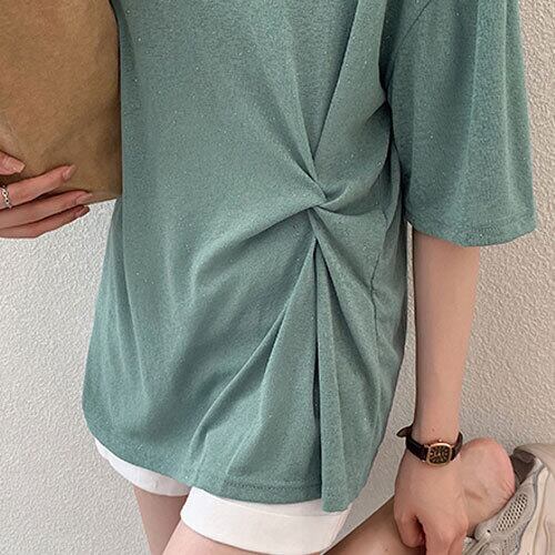 韓国風 Tシャツ レディース きれいめ 五分袖 ラウンドネック キラキラ オシャレ トップス ゆったり カジュアル 体型カバー 夏 20代 30代 40代 くすみカラー 大きいサイズ RB-R3-23-SA06-0045