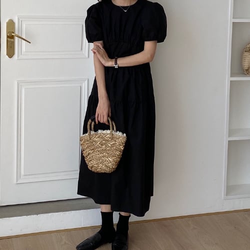 ワンピース レディース マキシ丈 半袖 ラウンドネック シフォン パフスリーブ きれいめ 大人 上品 ゆったり 夏 20代 30代 40代 くすみカラー 大きいサイズ RB-R3-23-SA06-0049
