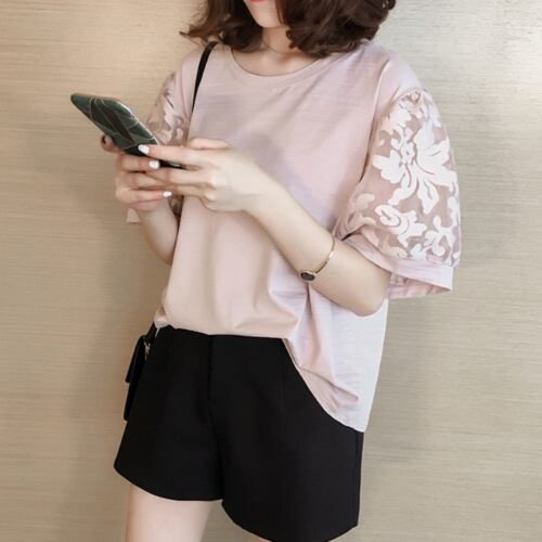 韓国風 ブラウス レディース きれいめ 半袖 ラウンドネック 上品 花 シャツ トップス オシャレ 大人 夏 20代 30代 40代 くすみカラー 大きいサイズ RB-R3-23-SA06-0052