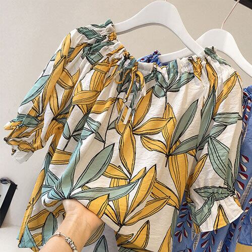 韓国風 シャツ レディース シフォン ブラウス ボートネック 五分袖 オフショルダー 着痩せ 綺麗 涼し気 夏 20代 30代 40代 くすみカラー 大きいサイズ RB-R3-23-SA06-0059