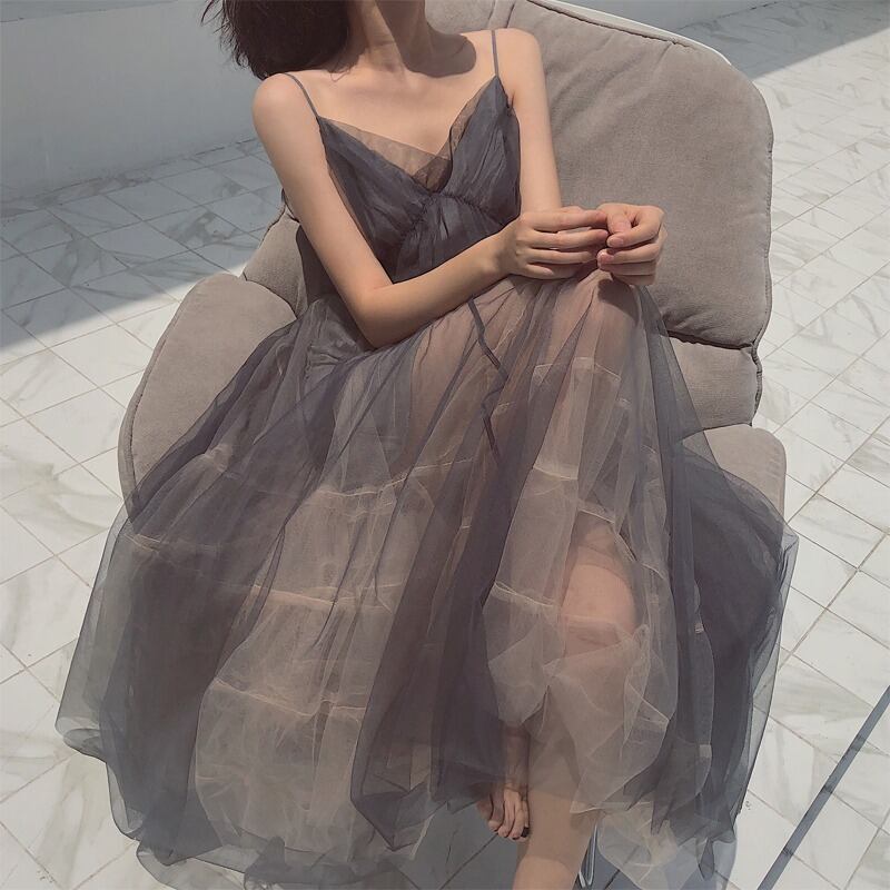 ワンピース レディース 夏 ロング丈ワンピース チュールワンピース キャミワンピース きれいめ 着痩せ 韓国風 オシャレ セクシーRB-R3-25-NK06-0003