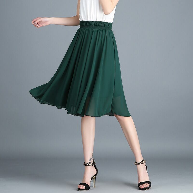 スカート レディース 春夏 ウエストゴム シフォンスカート 膝丈スカート Aライン ボトムス 美脚 着痩せ 4色 大きいサイズ 新作RB-R3-25-NK06-0006