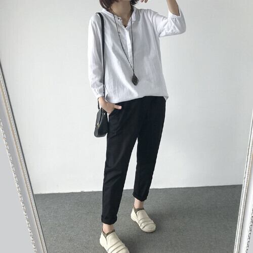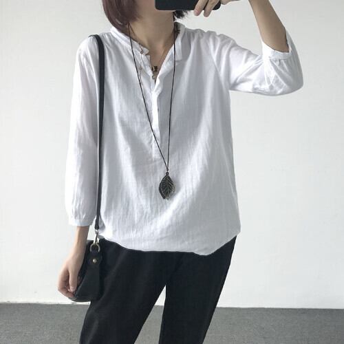 シャツ ブラウス レディース 立襟 長袖 綿麻 着痩せ ゆったり 大人 無地 カジュアル コーヒーブラウン ホワイト ブラック グレー 夏 20代 30代 40代 くすみカラー 大きいサイズ RB-R3-23-SA06-0088