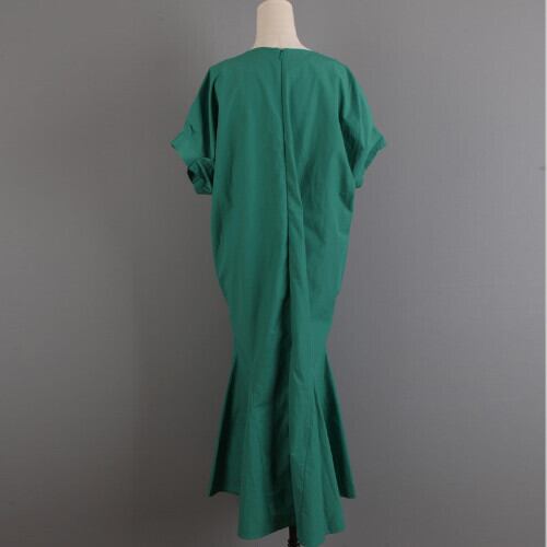 ワンピース シャツワンピ ロングT 半袖 ロング丈 綿 体型カバー 着痩せ グリーン 夏 20代 30代 40代 くすみカラー 大きいサイズ RB-R3-23-SA06-0091