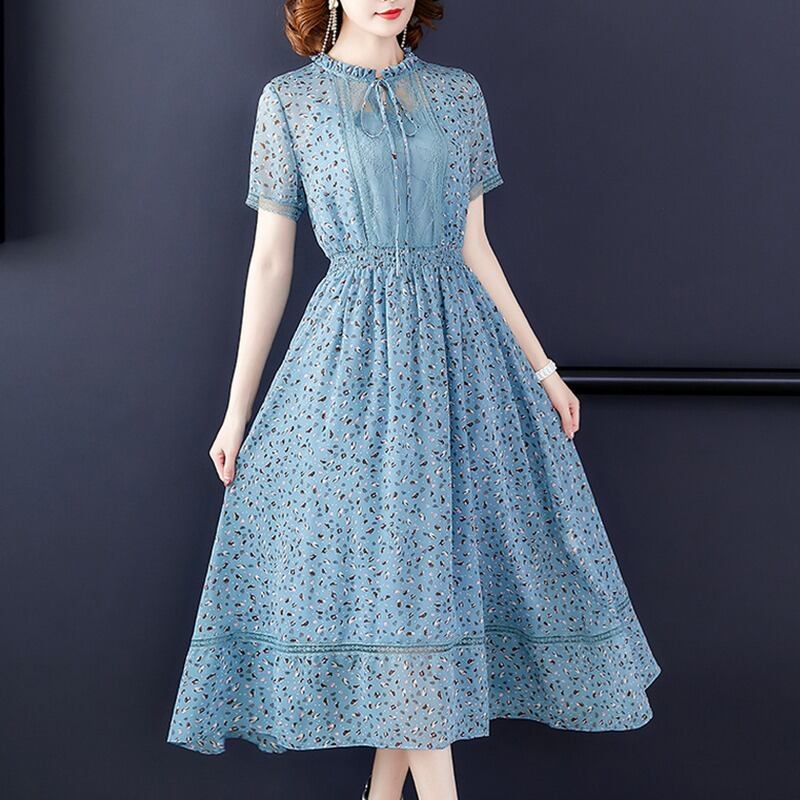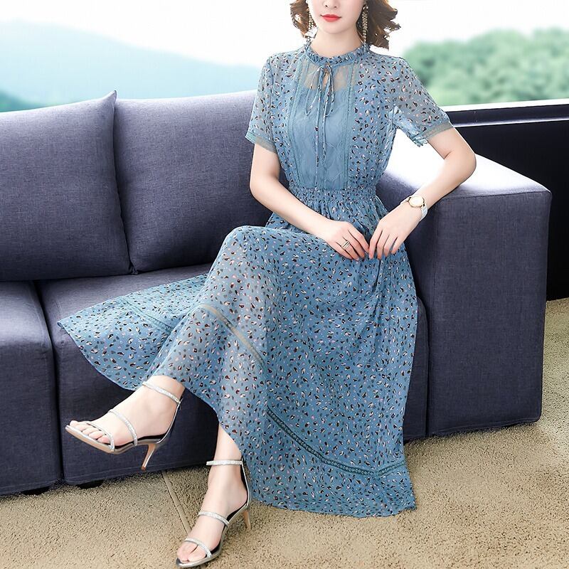 ワンピース レディース 40代 マキシワンピース 夏新作 半袖ワンピース 花柄シフォンワンピース Aラインスカート オシャレ