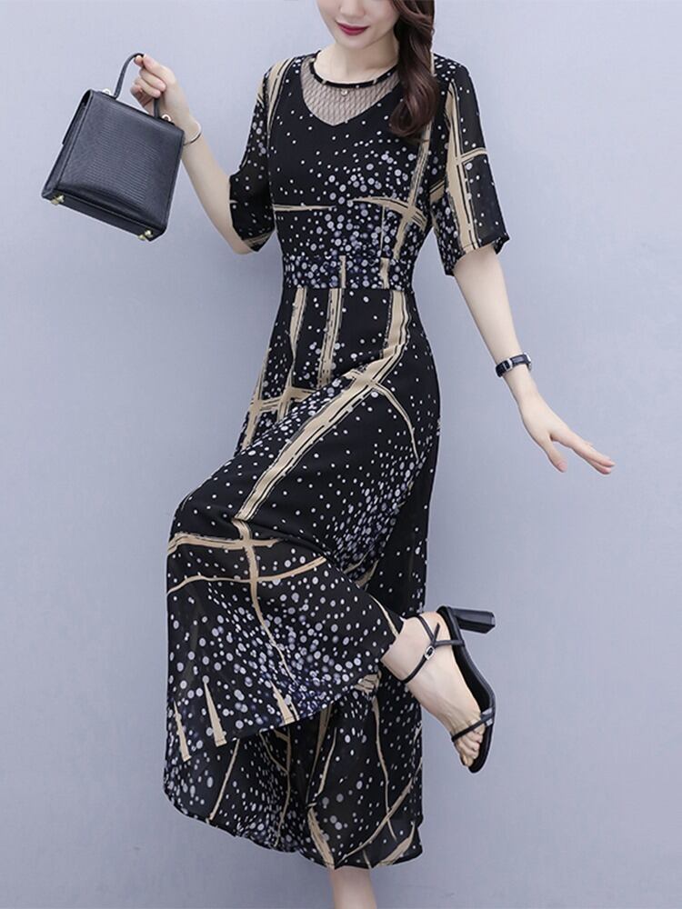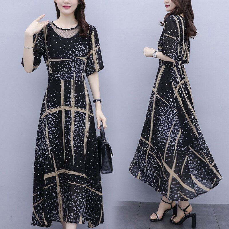 ワンピース レディース 40代 キレイめ マキシワンピース 夏 半袖ワンピースシフォン フレアスカートひざ下 ボヘミアワンピース 韓国風 オシャレ 大人 30代 50代RB-R3-25-NK06-0031