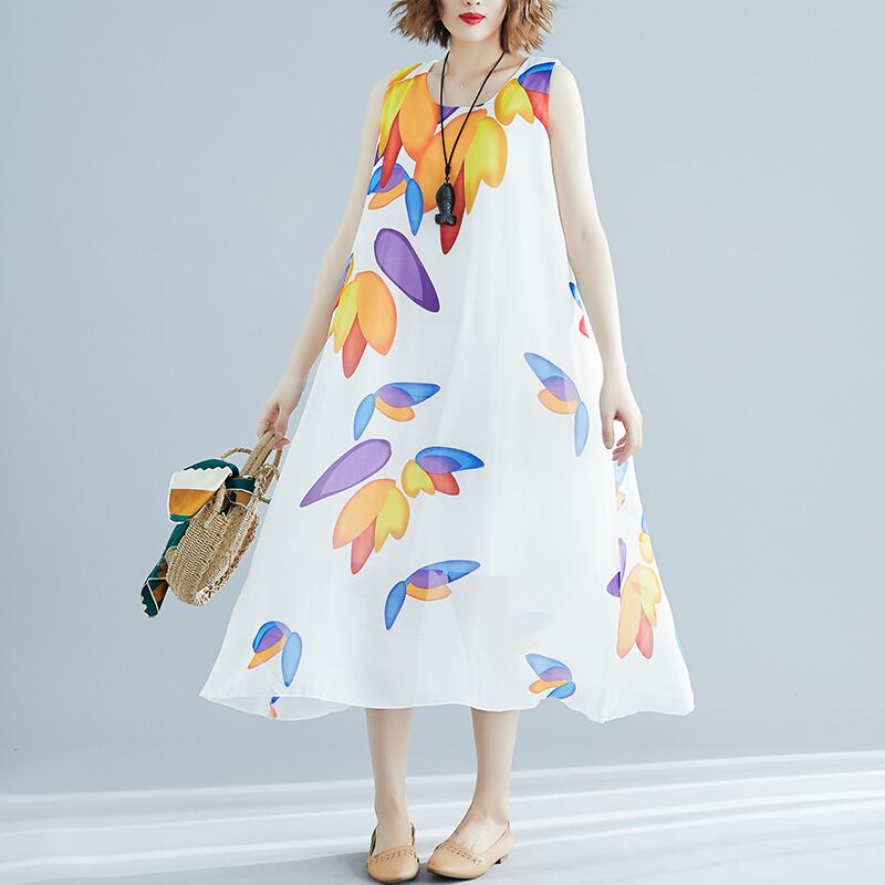 ワンピース 夏 新品 大きいサイズ シフォン スカート 洋風プリント 文芸ワンピース ゆったり 体型カバー 主婦 OL 20代 30代 40代 RB-R3-TA02-CN07-0003