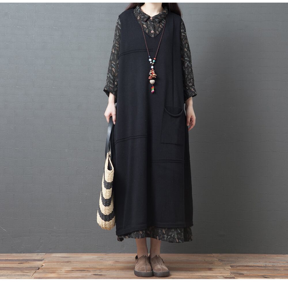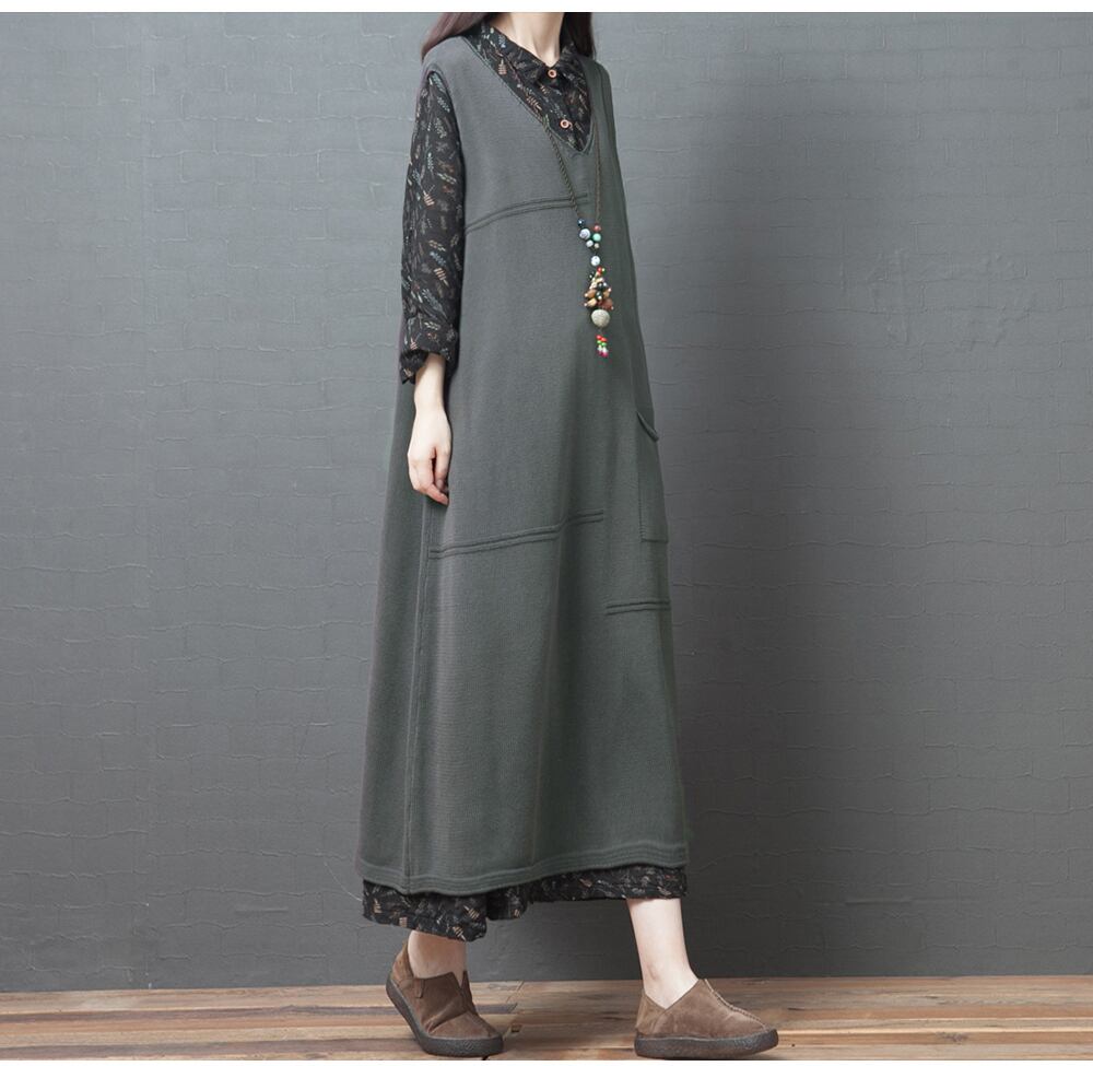 ワンピース Vネック ニットベスト 大きいサイズ 着痩せ シャツ ゆったり 体型カバー 主婦 OL 20代 30代 40代 RB-R3-TA02-CN07-0007